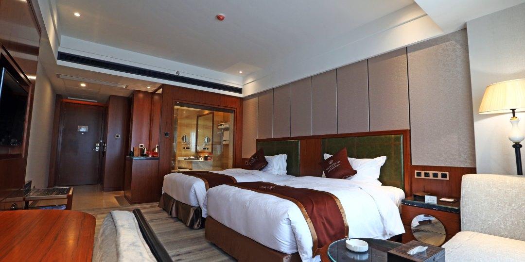 这里打造的是涉外旅游精品商务酒店,融合中西文化,整体气势宏伟、装潢典雅,拥有美轮美奂、独具匠心、时尚精致的各式客房。所有房间24小时供应天然温泉。