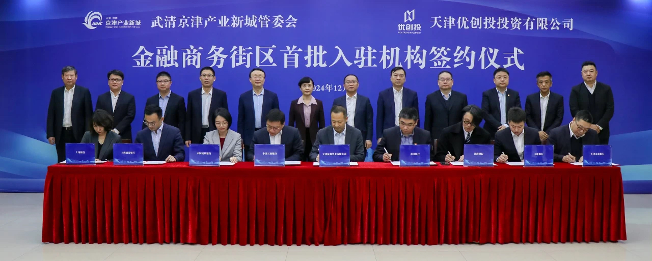12月26日上午,值此武清京津产业新城发布一周年之际,京津产业新城金融商务街区首批意向入驻机构座谈签约会举行,深入学习贯彻习近平总书记视察天津重要讲话精神,认真落实全市高质量发展“十项行动”和区委“3+1+1”工作思路,进一步完善京津产业新城科技金融服务体系,为发展新质生产力、建设“新产业之城”赋能。区委书记刘惠,区委副书记、区长许颖悟与渤海银行天津分行党委书记、行长王兵,上海银行天津分行党委书记、行长于枫,工商银行天津分行党委委员、副行长王建军等金融机构代表座谈交流并共同出席签约仪式。