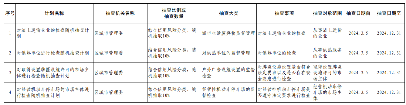 在线百家乐 城市管理委员会2024年度“双随机、一公开”抽查工作计划