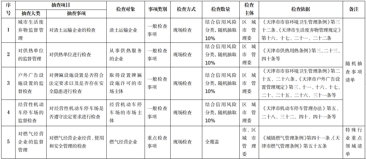 在线百家乐 城市管理委随机抽查事项清单和特殊行业重点领域清单(2025年)