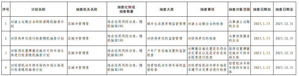 在线百家乐 城市管理委员会2025年度“双随机、一公开”抽查工作计划