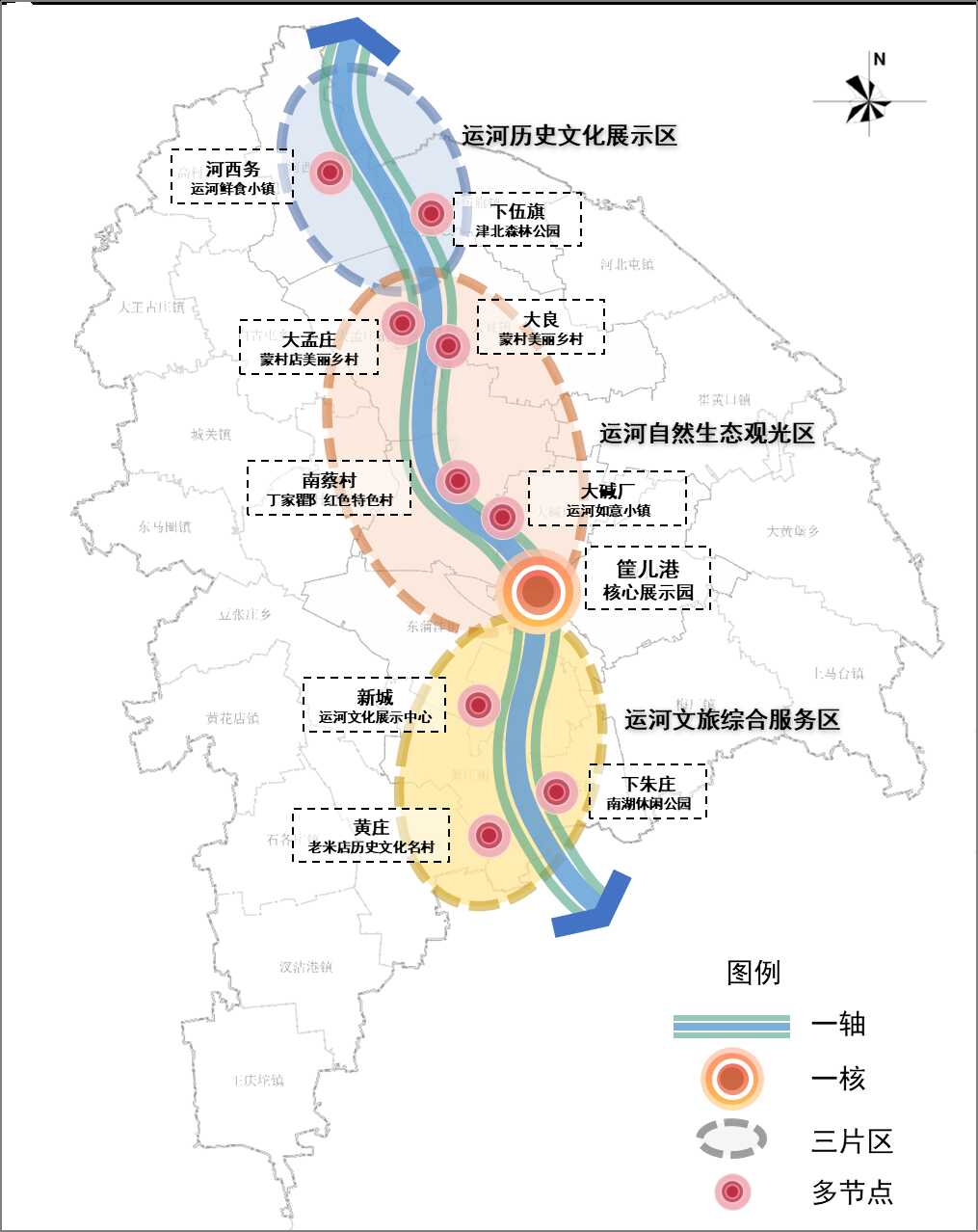 附图2:大运河武清段“一轴、一核、三片区、多节点”空间结构规划图