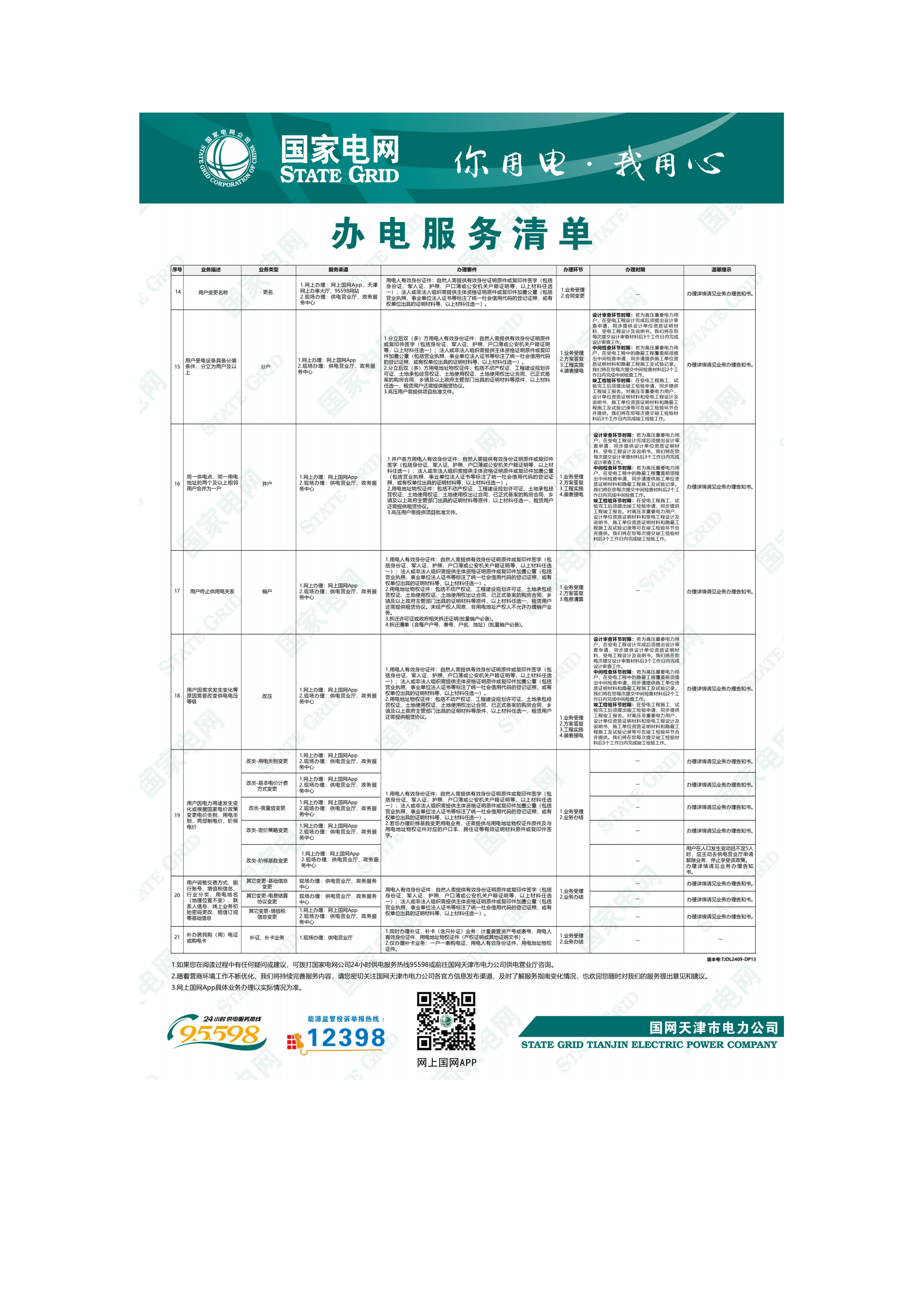 国家电网办电服务清单