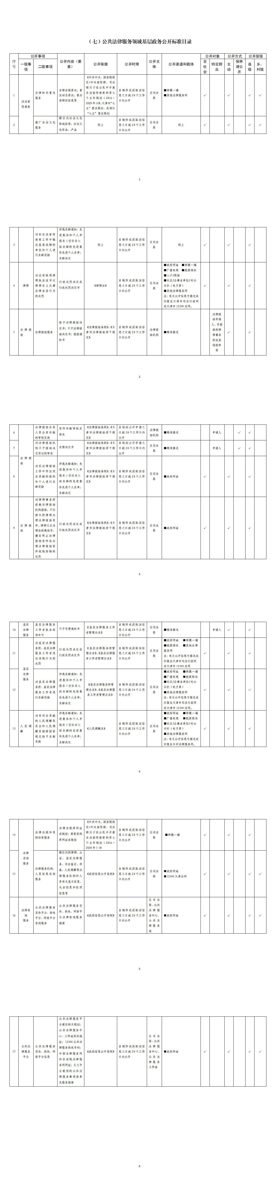 公共法律服务领域基层政务公开标准目录