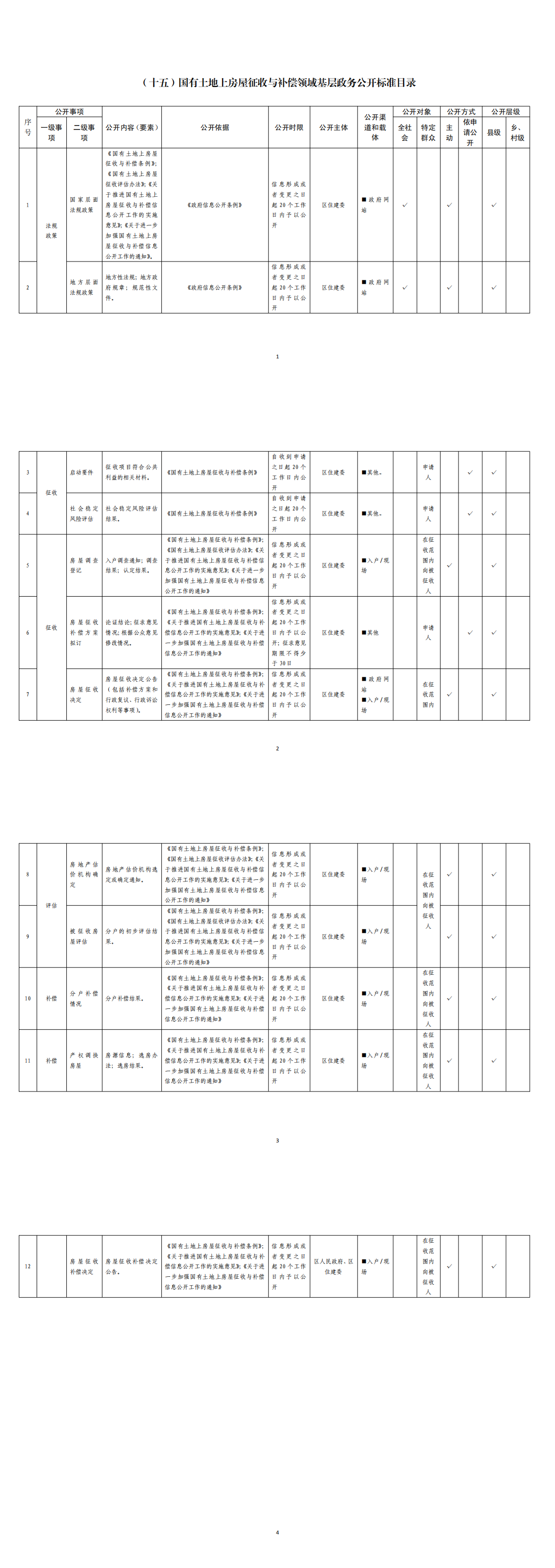 国有土地上房屋征收与补偿领域基层政务公开标准目录