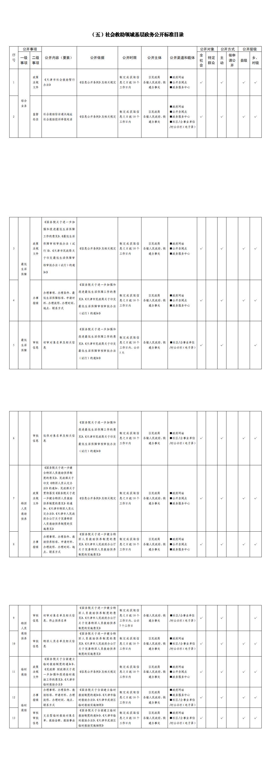 社会救助领域基层政务公开标准目录